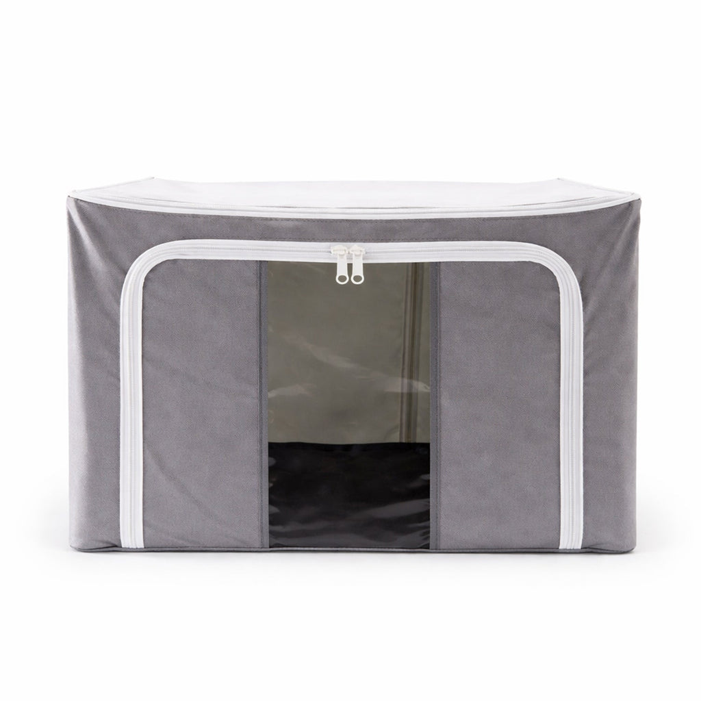 • COLLAPSIBLE & DOUBLE ZIPS CLOSE DESIGN - Fold away or collapse flat under a bed or in drawers when not in use by folding the steel frame – Double Zipper closure protects against dust, pest, water damage, and smell. It has two openings (Front and Top for easy accessibility).